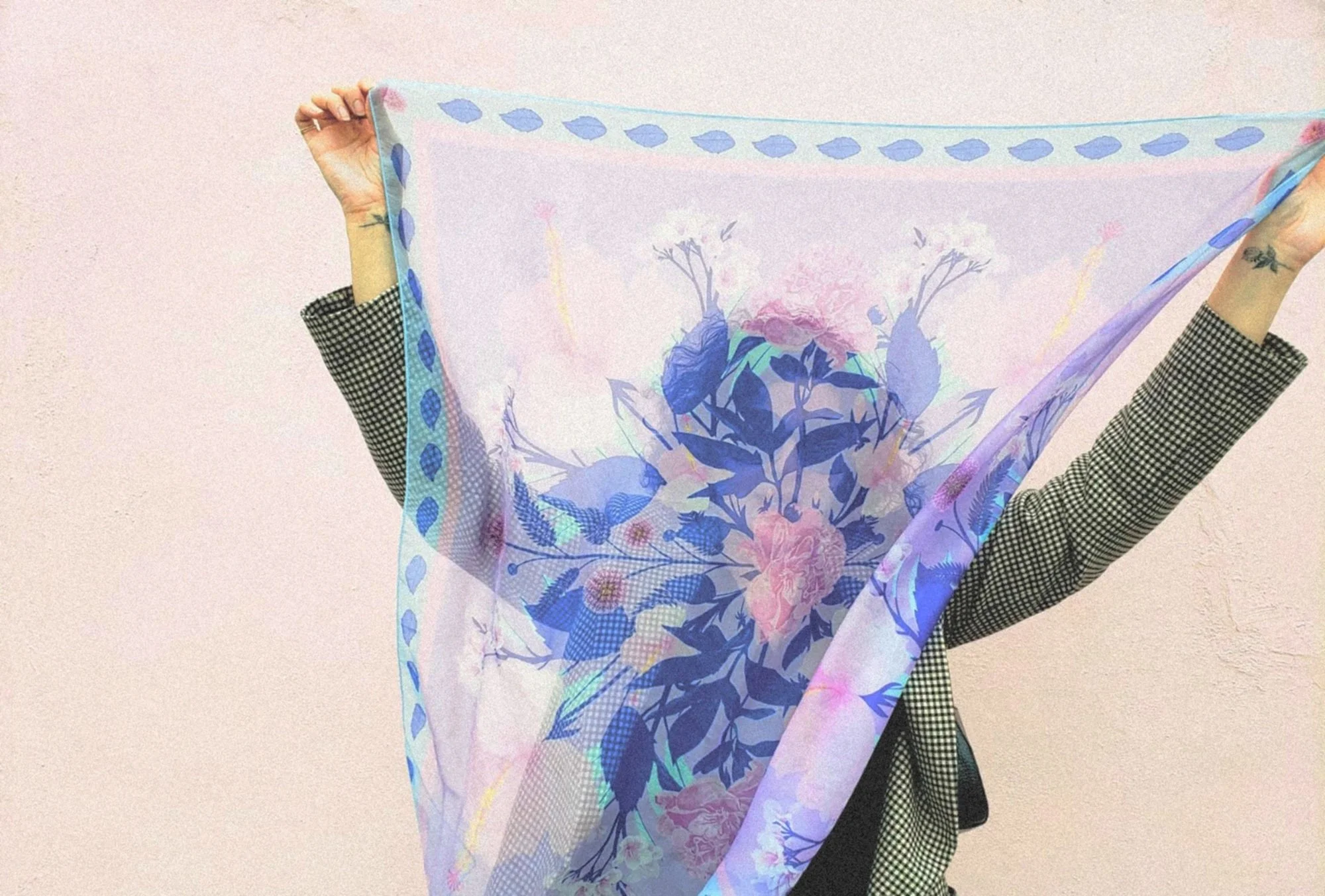 This delicate scarf with floral pattern is perfect for Spring/Summer and can be worn in a variety of ways. Scarves are available to order through my